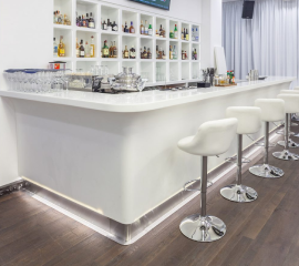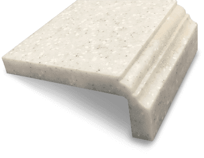 Кромка имеет два радиуса и "вставку" из искусственного камня другого, зачастую контрастного, оттенка. Благодаря бесшовным соединениям, такая конструкция выглядит как единое целое.