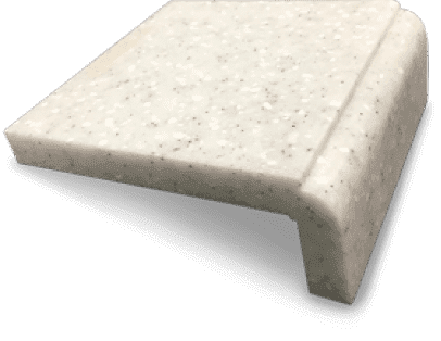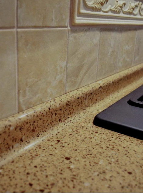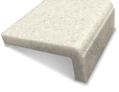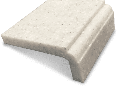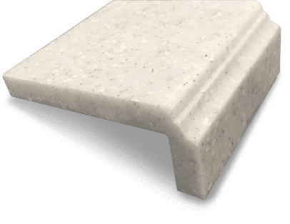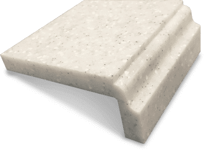 Кромка имеет два радиуса и "вставку" из искусственного камня другого, зачастую контрастного, оттенка. Благодаря бесшовным соединениям, такая конструкция выглядит как единое целое.